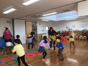 年長がいる午後のクラス、鬼退治をかなり楽しんでいました🤣さすがの👹も降参したようです🤣