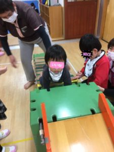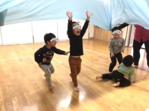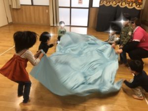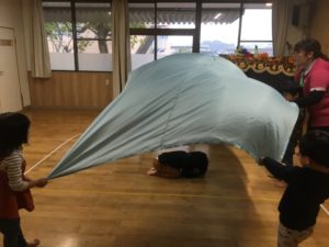 また、大布を上下に揺らすと、通り抜けたりジャンプしたり大喜びのお友達😄