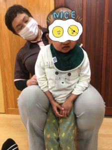 お友達とタイミングを合わせながら上に持ち上げていくと、、