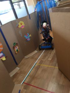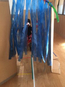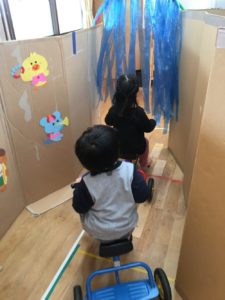 3日りす組の教室には、ダンボールでできた巨大なトンネル出現😀