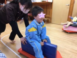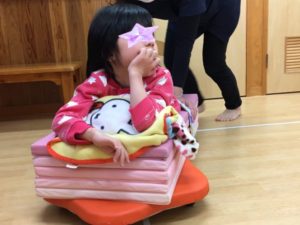 さらにスケーターにマットを置くと広々となり、腹這い姿勢でビューンと出発❣️
