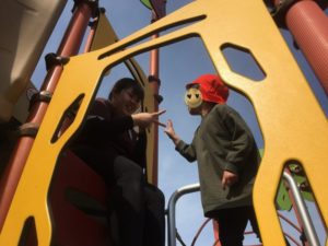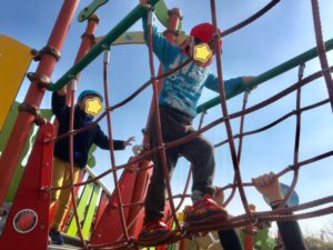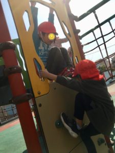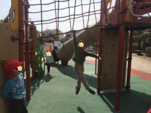 最後は、遊具に登ったミキ先生が通せんぼ🤣ジャンケン勝負を何度も繰り返し、通過することができました😆