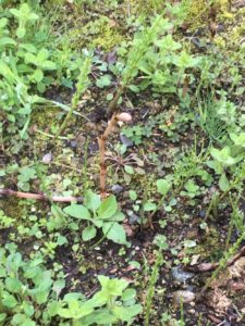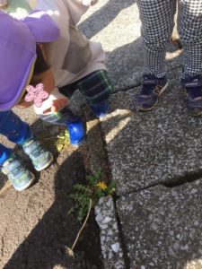 座り込んで見ている先には、、側溝に生えたタンポポ🌼