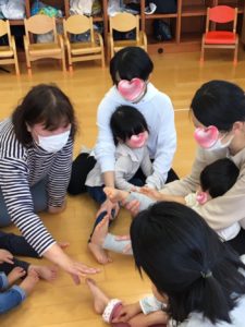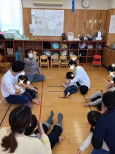 母子登園なので保護者の方々も一緒にわらべ歌に参加🎵