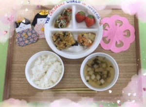 なんと今日のメニューのデザートは、いちご🍓これにはりす組のお友達もびっくり‼️❣️