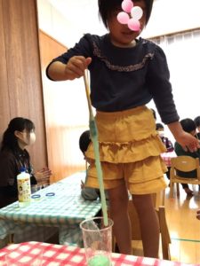 また、ストローをスライムにさして、フーっと吹き、大きな風船を作るお友達もいました👏これはお見事です👏