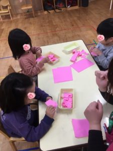 画用紙を小さくちぎる工程では、、