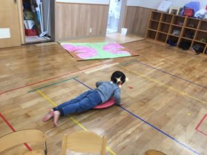 凸床マットでは、寝そべってゴロゴロ〜っと進んだり😀