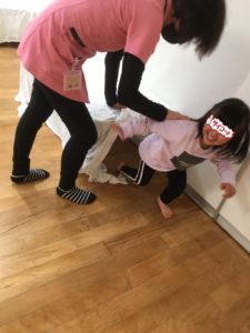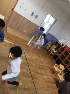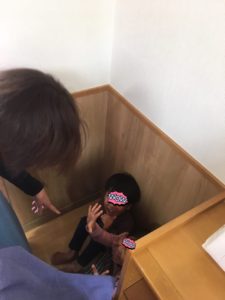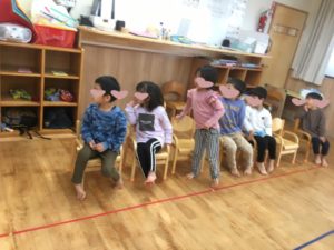 見つかったお友達は椅子に座って待つこともでき、かくれんぼのルールをみんなしっかりと守って楽しんでいました👏