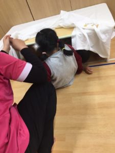 という事で、さっそくペアのお友達と隠れる場所を探して😆