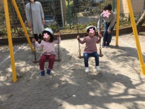 最後は、二人仲良くブランコに🤗しっかりとブランコを握り乗ることができました👏