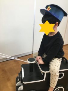 今日のきりん組さんは、SLごっこ。子どもたちの大好きな乗り物です。