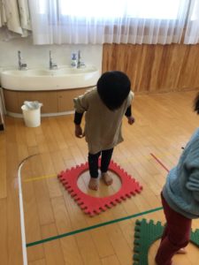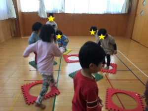 音楽が止まったらマットの中に入る遊びをしました🎵