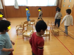 今日のぱんだグループのお友達はイス取りゲームをしました💺