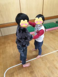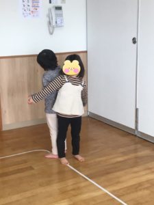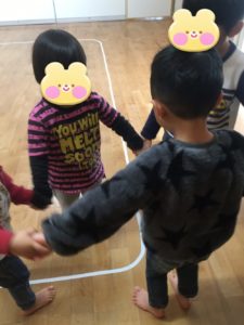 リトミックの中で、「なべなべそこぬけ~♪」と歌いながら回ります。