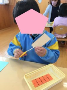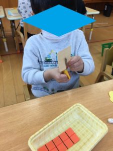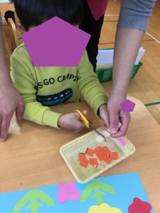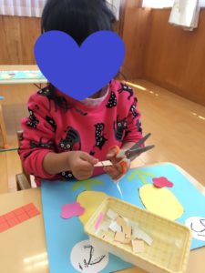 年中さんは楕円を連続切りで切った後で、年少さんと同じように