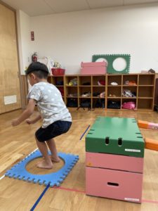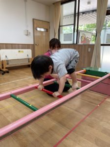 今日のりすグループは体の使い方を知ることをねらいに運動遊びをしました。