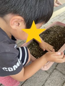 「大きくなってね~」と言いながら大切に土をかぶせていました。