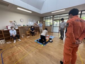 日置市消防署さんを招いて救命救急講習入門コースを受講しました。