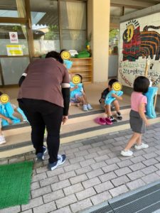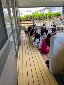 今日の午後クラスで、火事想定での避難訓練をしました。