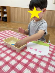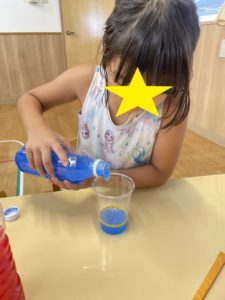 午後グループでは色水遊びや椅子取りゲームをして遊びました。