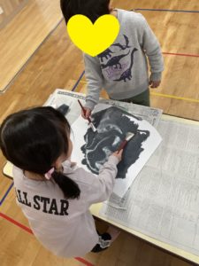 白いところがなくなるように よく見ながら真剣に塗っていたらいおん組さんでした。