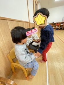 お友達に「はい、どうぞ」♪