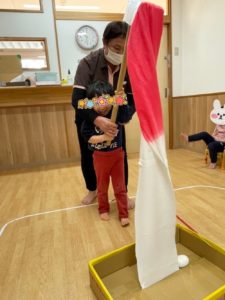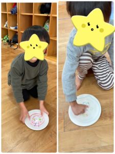 どちらのコマが長く回るかのやり取りをしたりとコマ遊びを時間いっぱいに楽しみました♪