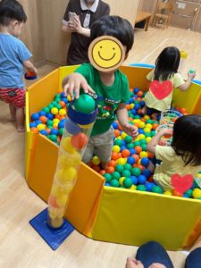 月曜日の母子グループはボールプールをして遊びました。