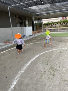 悔しくて涙を流すお友達、1位になれないと分かると途中で止まってしまうお友達、様々ですがみんな少しずつ最後まで頑張ることが出来るようになってきました。