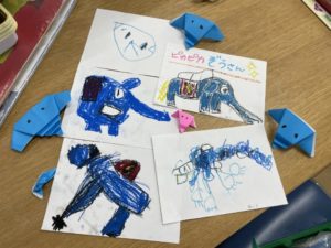 また、感謝の気持ちを込めて年長児さんが滑り台の絵を描いたり、職員に教えてもらいながら折り紙でゾウを作りました🐘✨