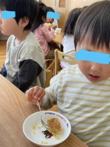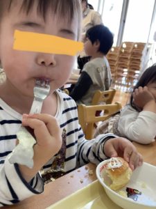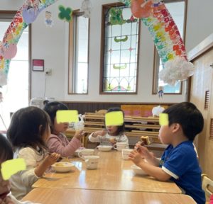 お友達と楽しくお話しながら食べる児や・・・