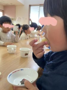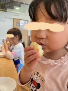 今日のおやつは、新おやつメニューの「じゃがいももち」でした♪