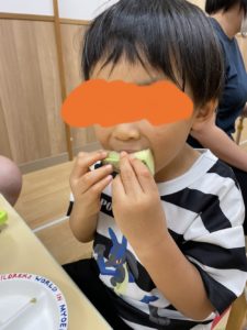 あま~くておいしい!と口いっぱいに頬張って