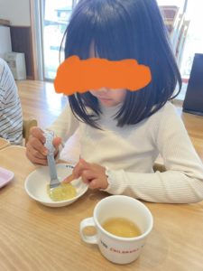 お友達もいましたが、ひとくち食べてみると良く進んで食べている様子でした♬♪