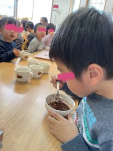 こども達の無病息災を願って、おやつは「ぜんざい」をつくりました!