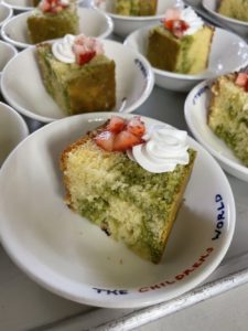 黄色の生地とみどりの生地、赤いいちご🍓と