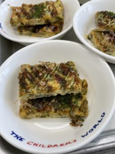 今日のおやつは「モロヘイヤのお好み焼き」でした!