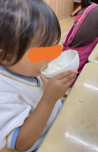 上手にお椀を持って飲むことができていました☆
