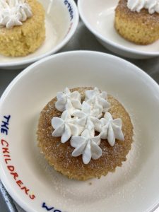 粉糖を少しかけて、クリームをお花🌸のように絞って完成☆