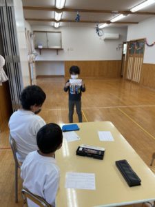 自己紹介カードに記入して発表した後、
