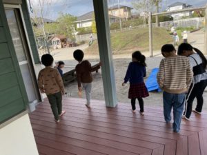 今日の活動は、すくすく探検と似顔絵制作、