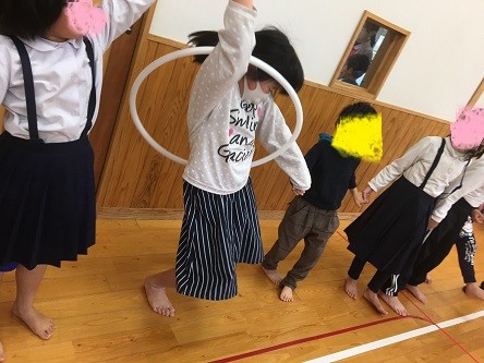 フラフープと新聞遊び