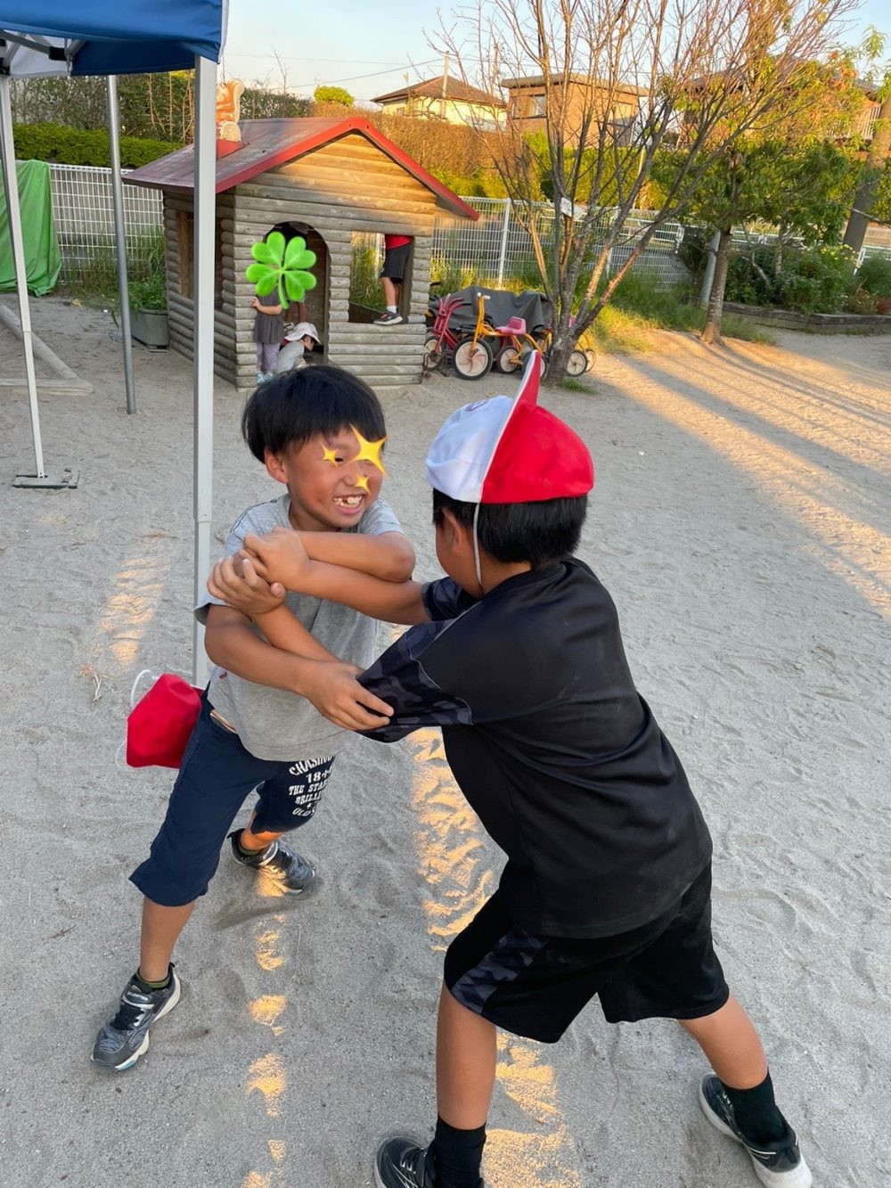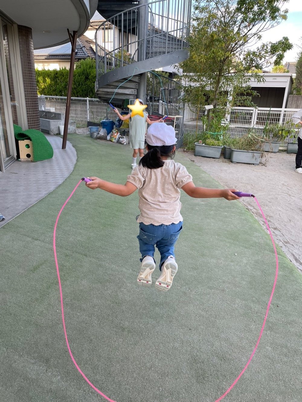 園庭にヒーローが